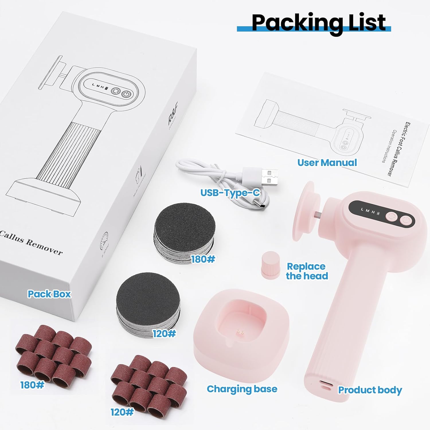 - Effortless Electric Foot Callus Remover : Special “L” shape labor-saving electric callus remover can effectively removes rough, dry, dead skin from your feet . Unlike regular foot files that require you to grip the base tightly, our product allows you to simply hold the handle with a gentle grip