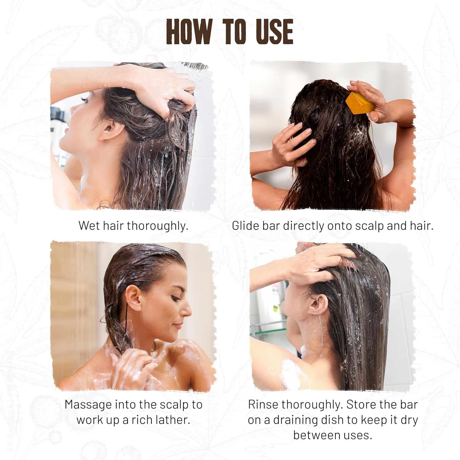 - DEEP NOURISHMENT WITH OUR HAIR SOAP BAR: This soap bar for all hair types is a moisturizing powerhouse. Its castor oil-infused formula deeply nourishes the hair, leaving it smooth, shiny, and healthy-looking. Say goodbye to dry, brittle hair with our organic shampoo bar that provides essential hydration for soft, manageable locks.
