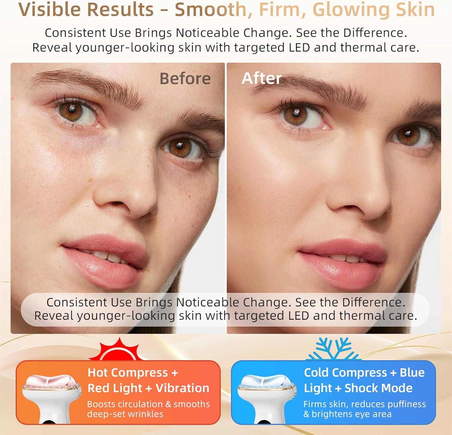 - 【PROFESSIONAL FACIAL MASSAGER WITH MULTI-MODES】 This multifunctional facial massager combines vibration, heat, and cooling options, letting you customize your routine for lifting, soothing, or revitalizing your skin in minutes