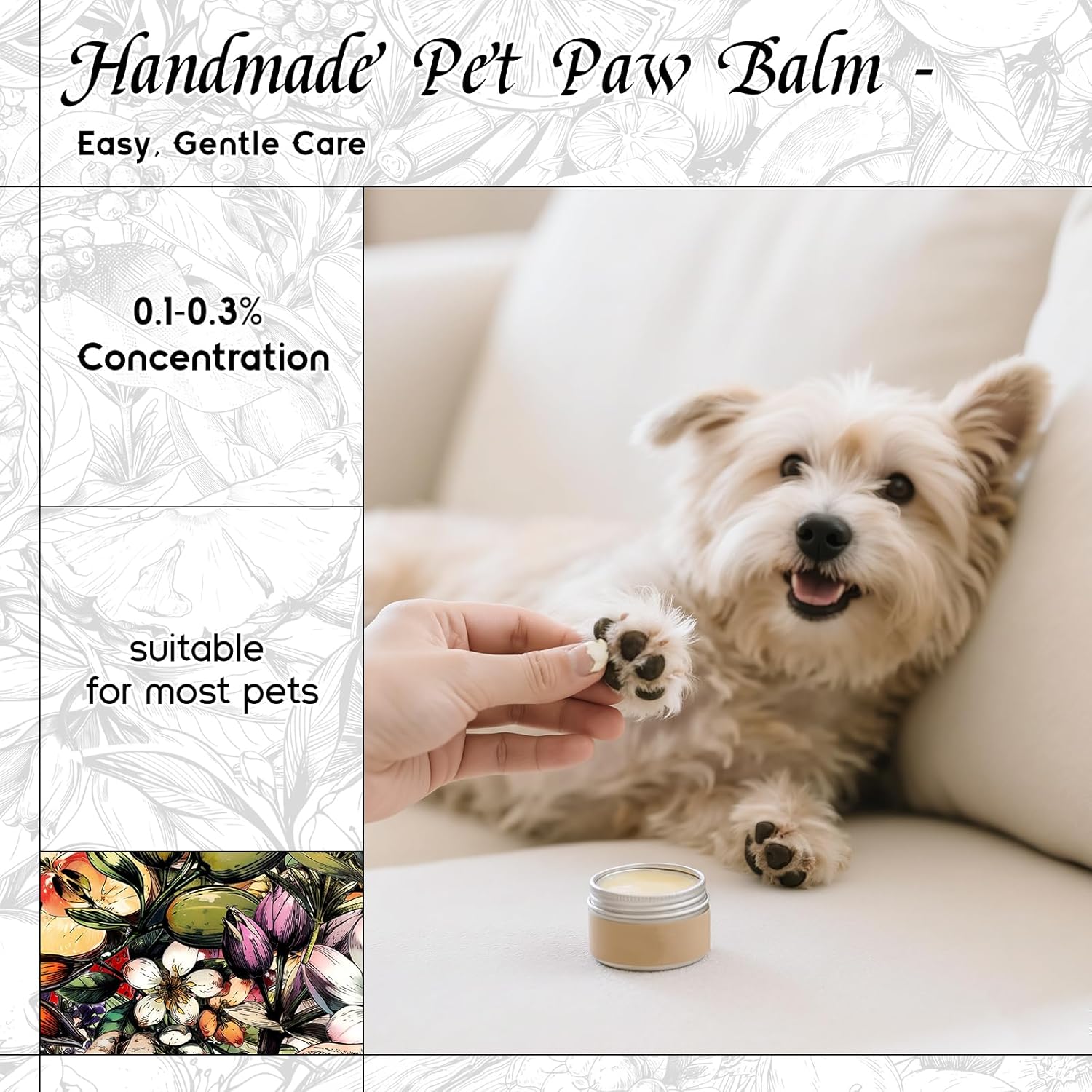 - Pet-Safe – A gentle, pet-friendly formula suitable for homemade paw balms and sprays. Free from harsh alcohols