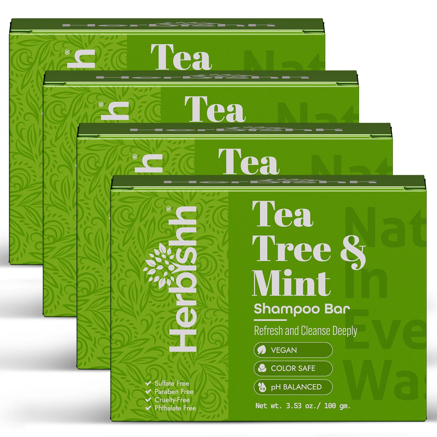 Herbishh Tea Tree & Mint Shampoo Bar – Tea Tree Oil Soap Bar for Oily Hair & Scalp Cleanse – Solid Travel Size Shampoo for Men & Women – Minty Deep Cleansing, 3.53 oz pk of 4