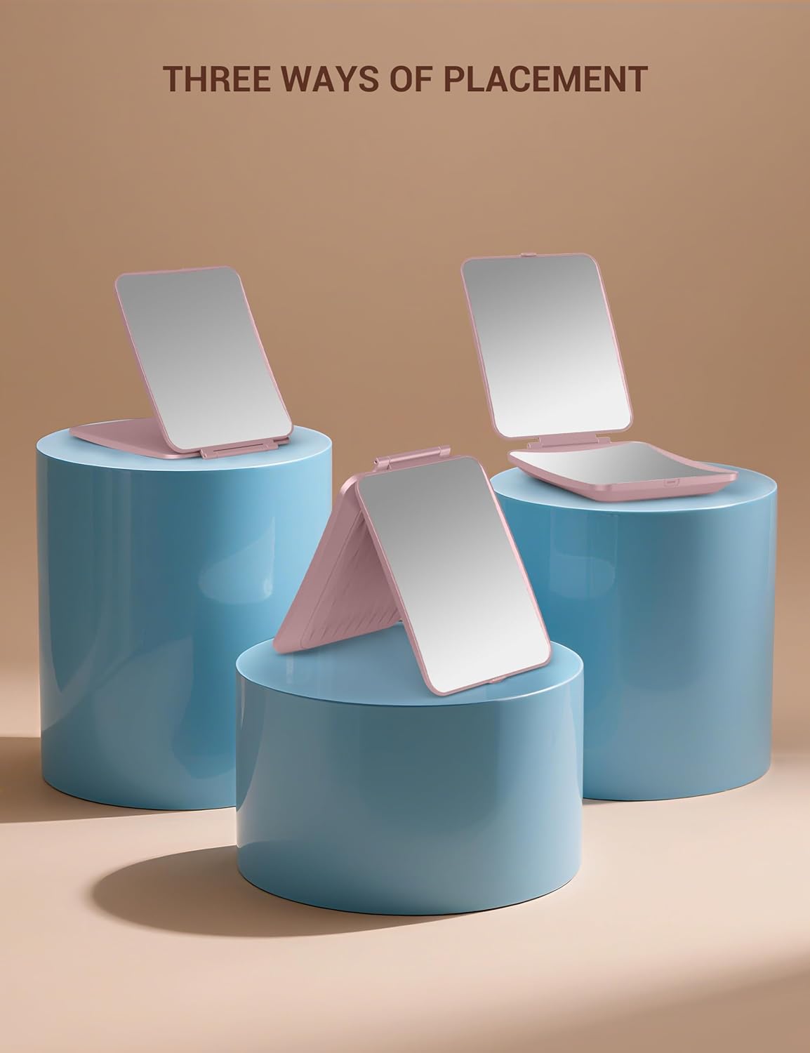 Travel Makeup Mirror with 1X/10X Magnifying, Portable Folding Make Up Tabletop Mirror for Office, Compact Vanity Mirror for Travel (Rose Pink, No LED Lights)