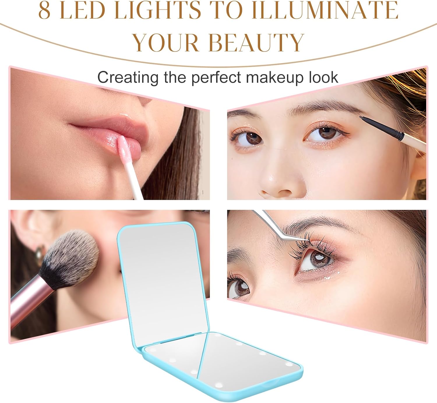 - [Stay Beautiful All the Time]:Our compact mirror is lightweight and compact, easy to carry, with a small built-in battery, which can help you save the time of charging, so that you can watch your facial makeup meticulously all the time. It's the perfect companion for you on the go. Whether you're in between makeup sessions or out and about, it can create a flawless look for you, so you can feel confident and beautiful on any occasion.