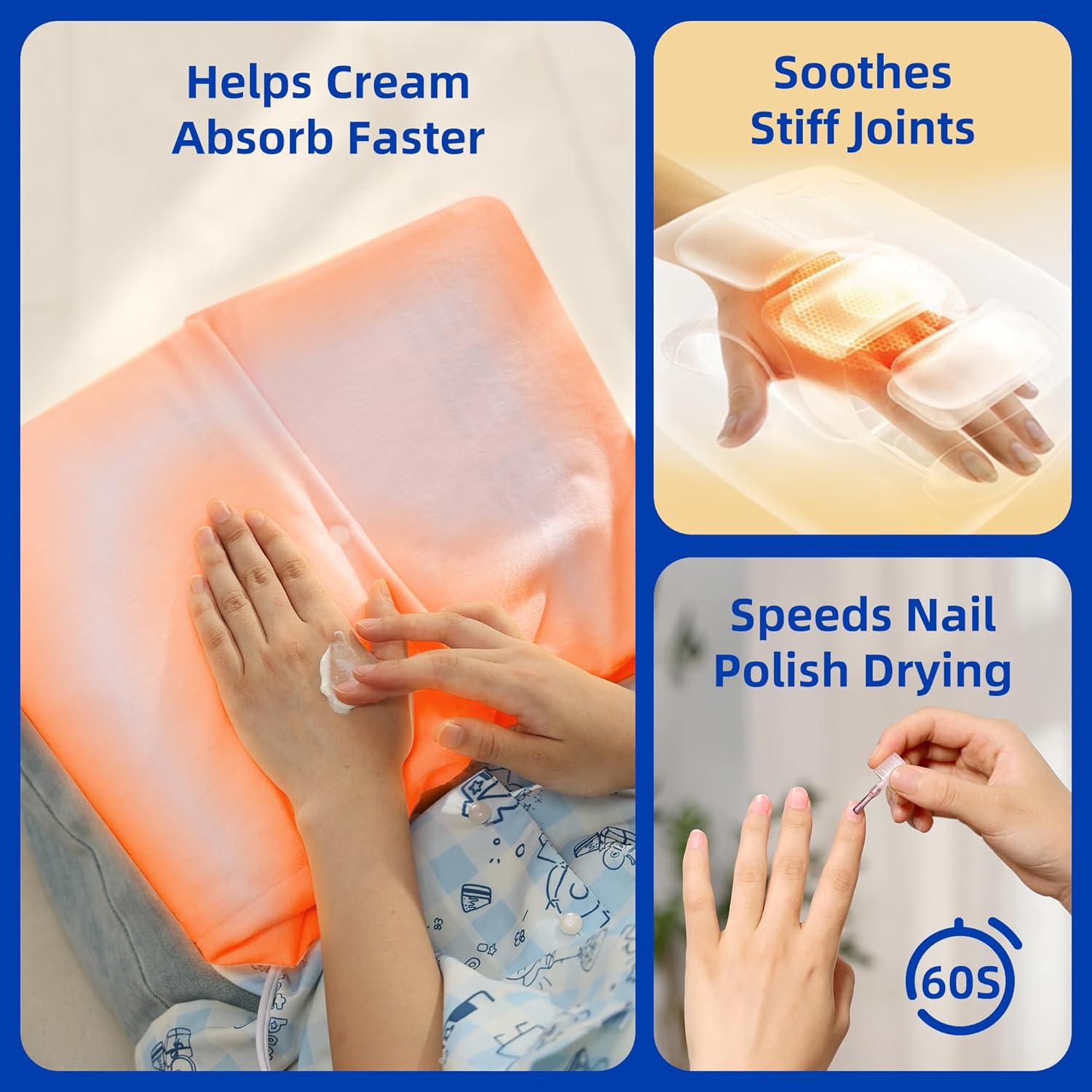 - ✱Safety Engineered for Peace of Mind✱✱Overheat protection + tangle-resistant 6ft power cord;Multi-use: Ideal for arthritis relief, nail drying, winter warmth, and spa treatments.