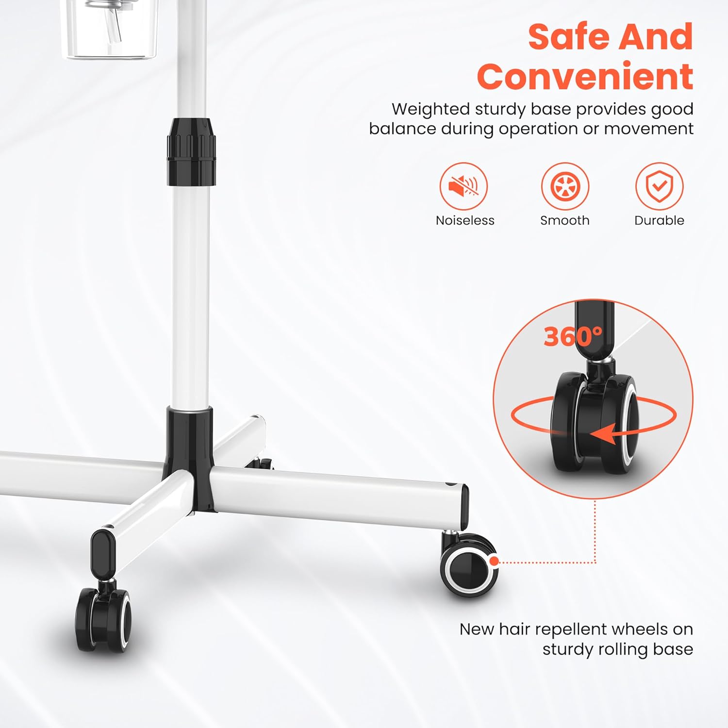 - Stability & Practicality: This facial steamer features a 4-leg wheel stand base for easy movement and stability during use. Ideal for salons, spas, or home, it delivers professional-quality treatments, ensuring a radiant and rejuvenated complexion every time