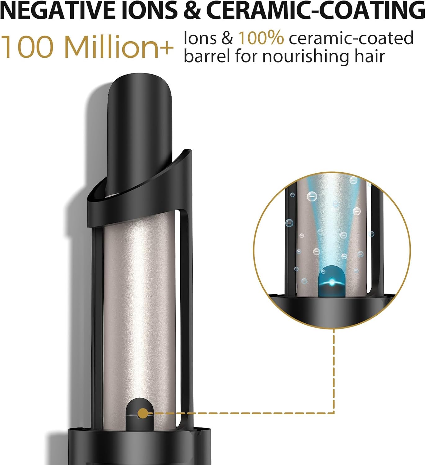 - 100M NEGATIVE IONS & 100% CERAMIC COATING: Achieve salon-perfect curls without damaging your hair! This rotating curling iron releases over 100 million negative ions that continuously nourish the hair roots, and the 100% ceramic barrel prevents heat damage, leaving your hair silky smooth and creating gorgeous, defined curls!