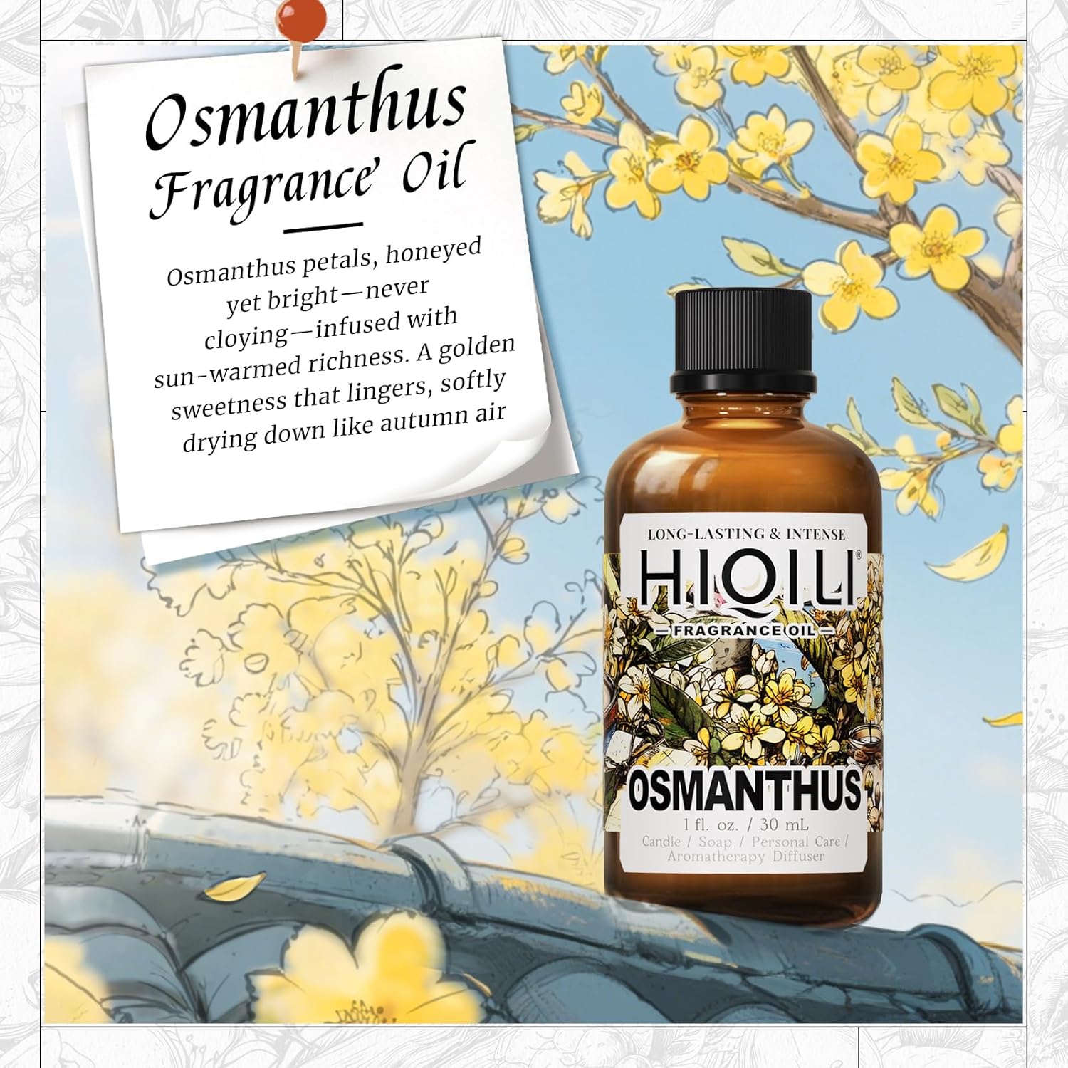 HIQILI Osmanthus Fragrance Oil, for Body Spray, Diffuser Use, Candle, Soap, and Women Perfume Making, Scented Essential Oil - 1 Fl Oz