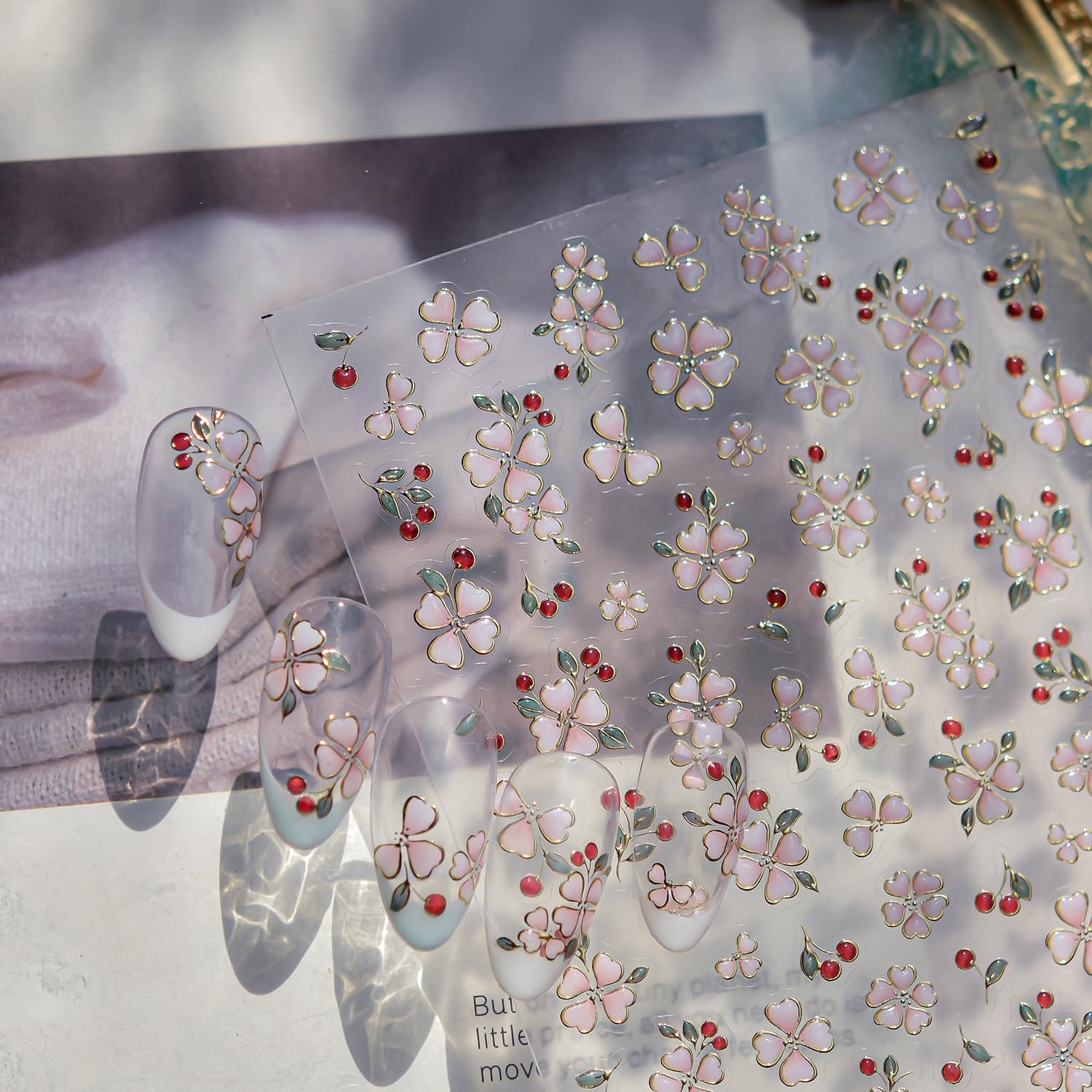 Flower Nail Stickers Pink Nail Art Stickers Jerry Nail Decals with Red Design Floral Nails Art Decals 5D Embossed Self Adhesive Nails Charms for Women Girls Manicure DIY Decoration Accessories