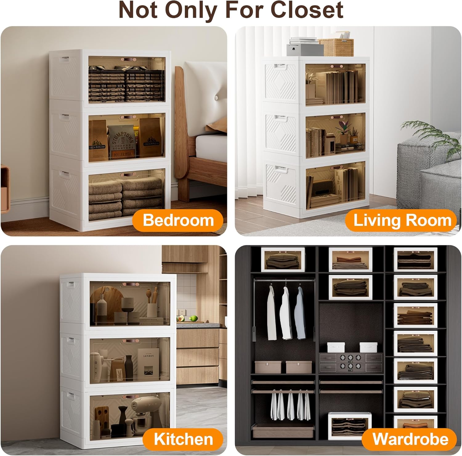 - [Foldable & Translucent] The foldable design provides more convenience. When you're not using these storage bins, you can fold them up and store them, saving more space. The translucent design of the storage box makes it easy to identify the contents of the storage box without opening it