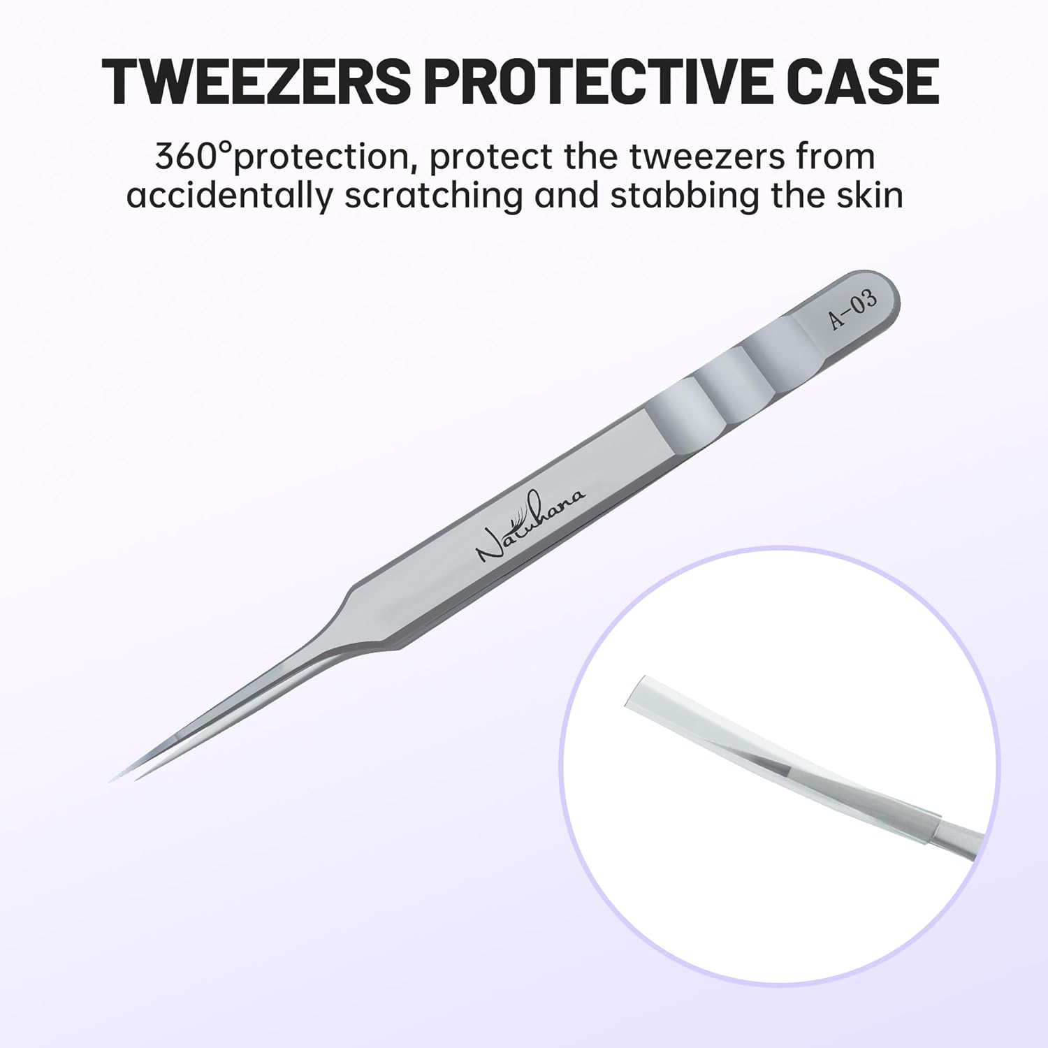 - ☪[Usage Safety]Our tweezers have protective case,bring a 360°protection,protect the tweezers from accidentally scratching and stabbing the skin.Another humanized design is its smooth grinding of corners,make it long-lasting grip without hurting or tiring hands. It is really a good helper for beginners to graft eyelashes.