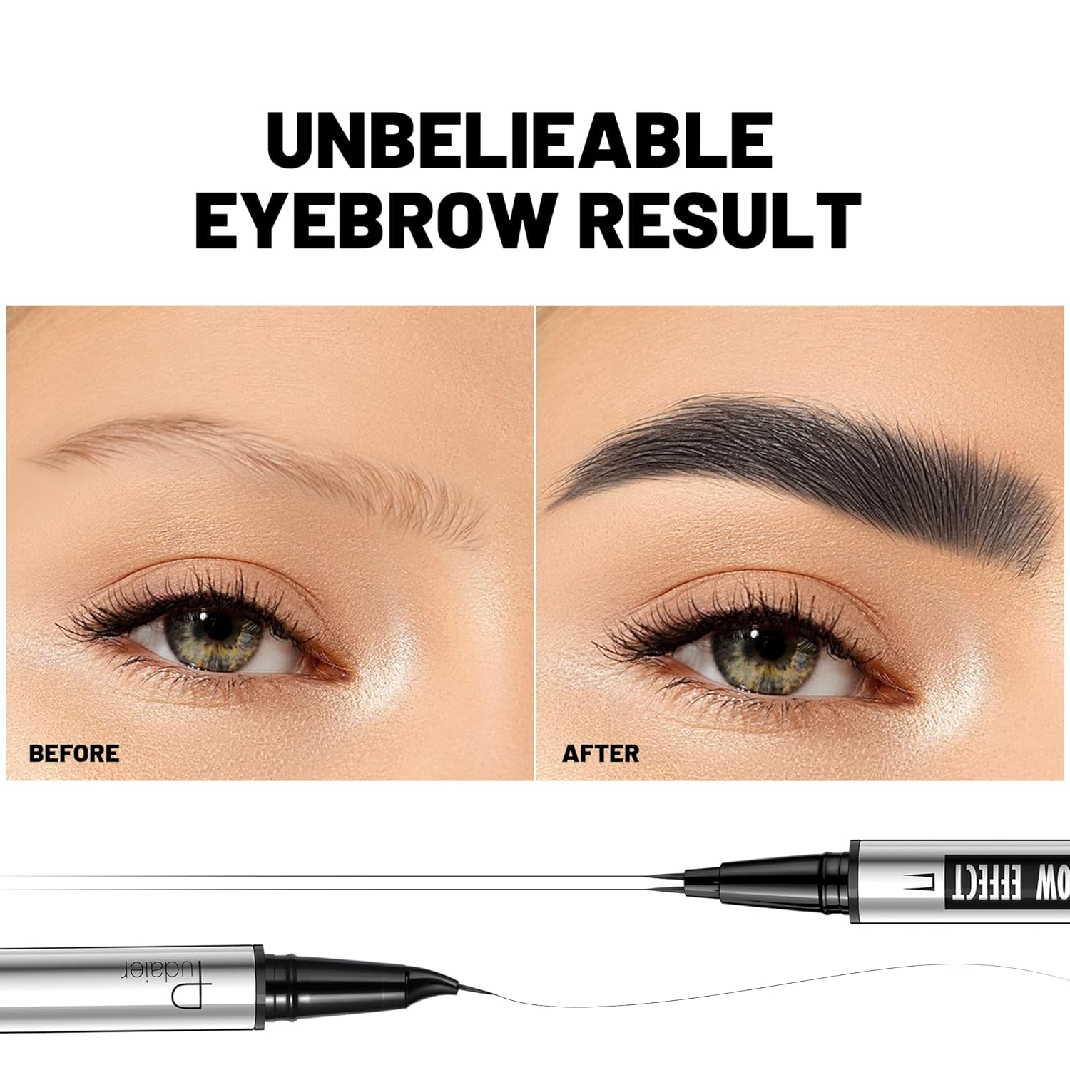 - NEWLY EYEBROW EASY MAKE UP:Pudaier innovative 2-in-1 dual-ended eyebrow pencil with 2 tip microblading eyebrow pen fill and blend color into eyebrows,draw 3D natural real hair, and ultra-precise pen makes realistic hair-like strokes & fill in sparse areas. It glides on easily and smooth to build natural looking, flawless, symmetrical and fuller brows with up to 24HR wear for brows.