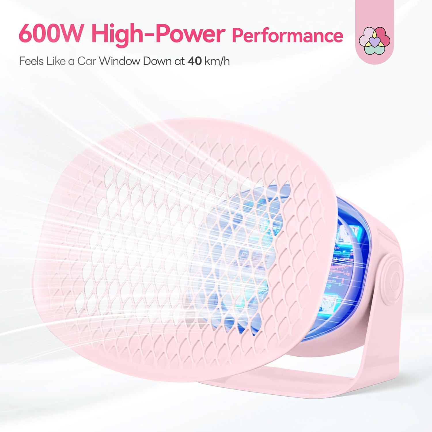 SAVILAND Essentials 600W Nail Dryer: Pink 6X Fast Drying Nail Polish Dryer for Regular Polish Nail Dryer with Adjustable Angle Fingernail Dual Heating & Cooling Modes Dry Nail Dehydrator for Gel
