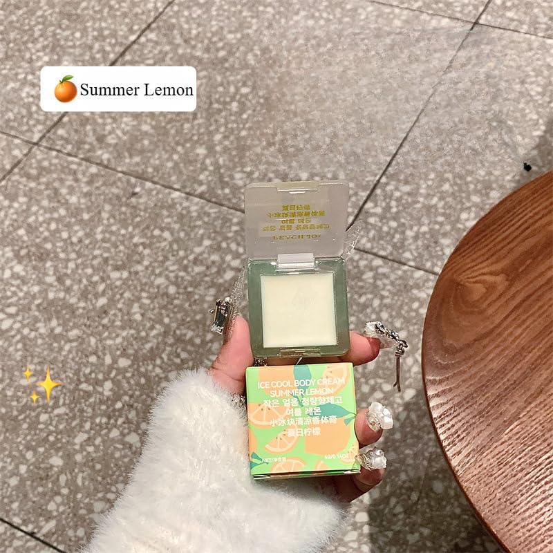 Mini Ice Cube Cooling Solid Perfume Balm - Refreshing Fruity Scent with Shimmer Highlighter, Long-Lasting Fragrance & Odor Neutralizer for Women (Portable Skin Glow) (Coastal Lemon Mist)