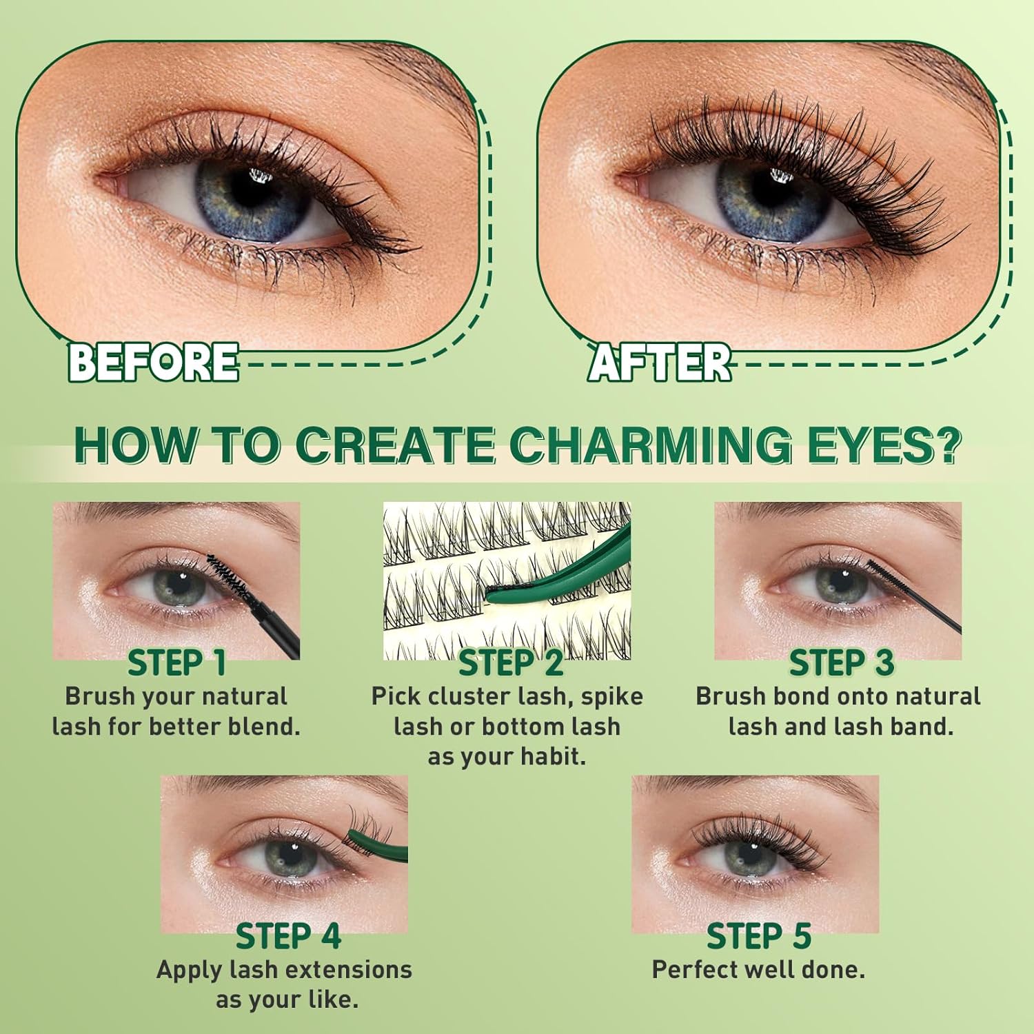 - Easy to Wear &Remove:Very easy to apply the cluster lashes with the brush included in the kit,the lash bond and seal extend the wear up to 3-4 days and the remover is very easy to remove the lash cluster and will not hurt the eyes