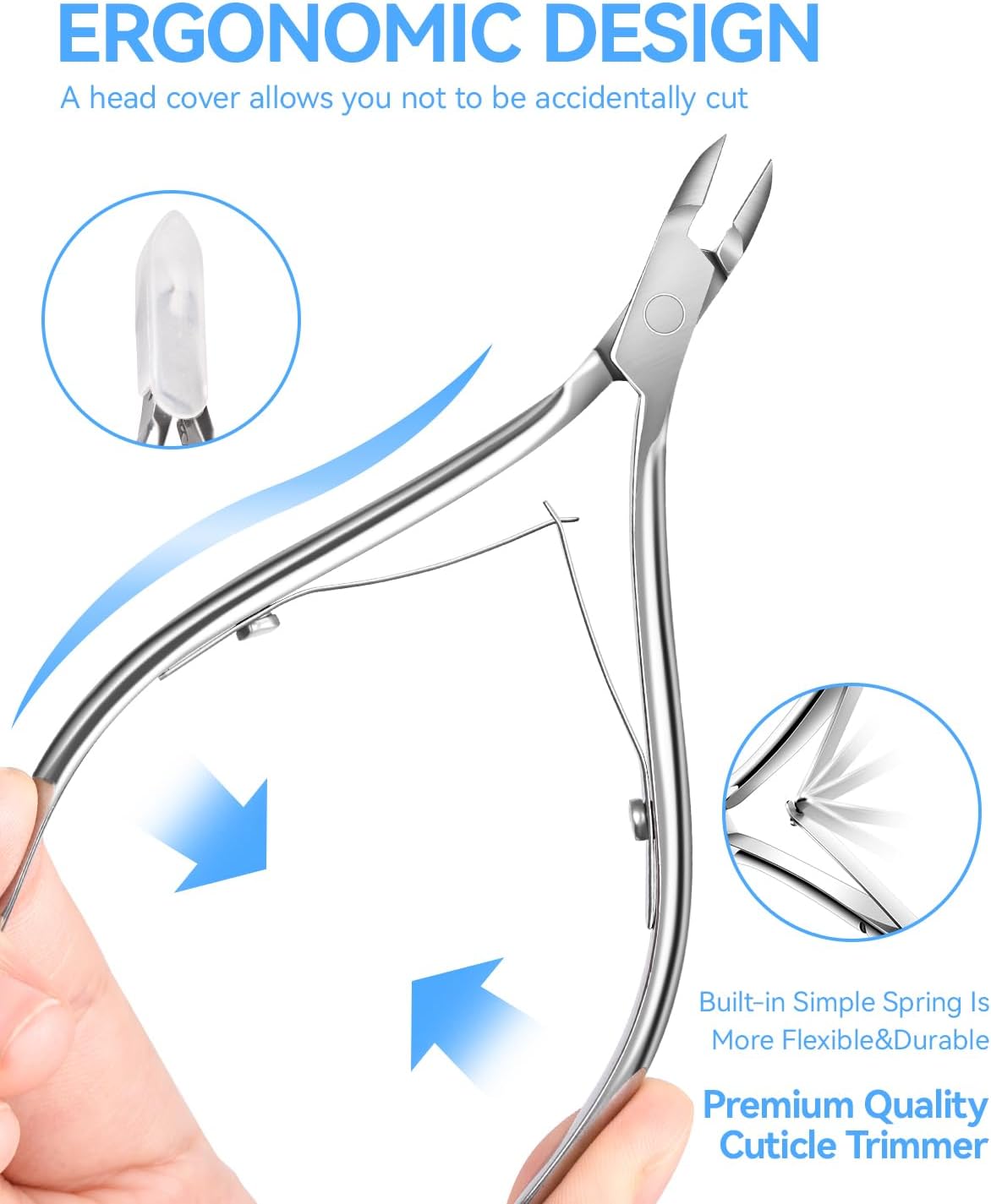 - Precision Trimming: The stainless steel cuticle clipper is sharp and durable, easily removing cuticle and neatening edges. With the support of other 4 nail tools, you can effortlessly manage fine details and achieve a salon-quality finish at home