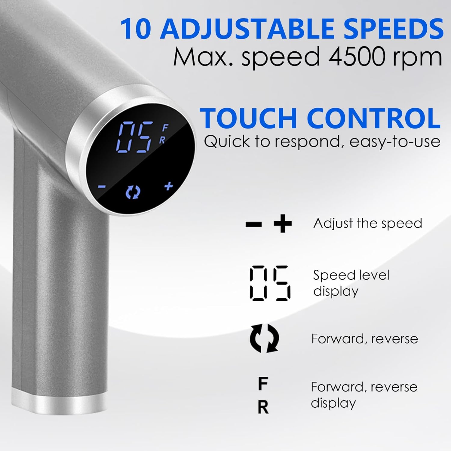 - RESPONSIVE TOUCH CONTROL: The touchscreen is very responsive and make it super easy to use, so you can easily adjust the speed, forward and reverse as needed. (there is also a thin plastic film that's over the LED screen that you remove.)