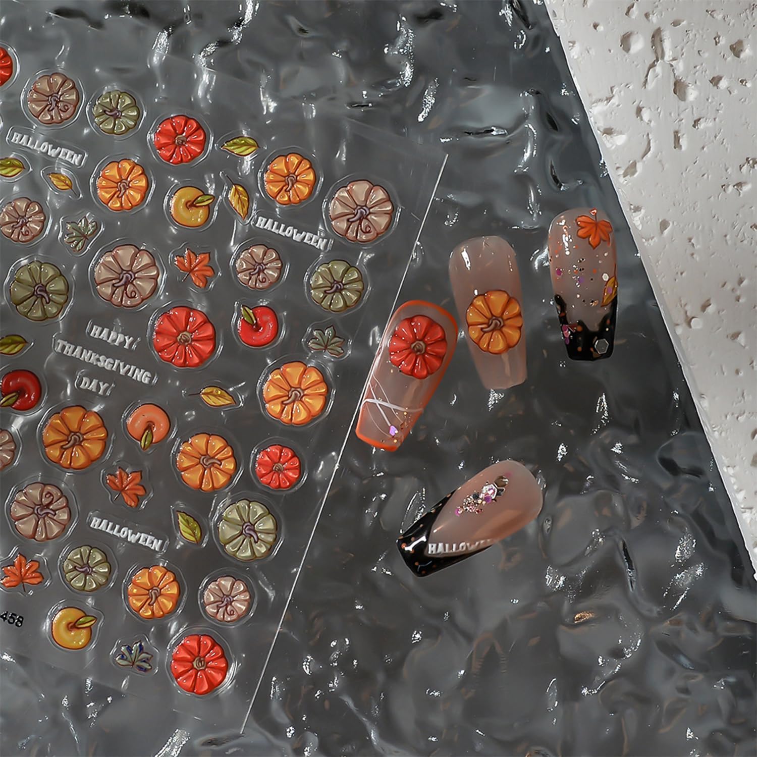 - Easy to Use: Just use tweezers to peel nail self-adhesive autumn leaves nail design decals and stick pumpkin decals on your nail. You can also use nail gel to cover to make the beautiful stickers last longer